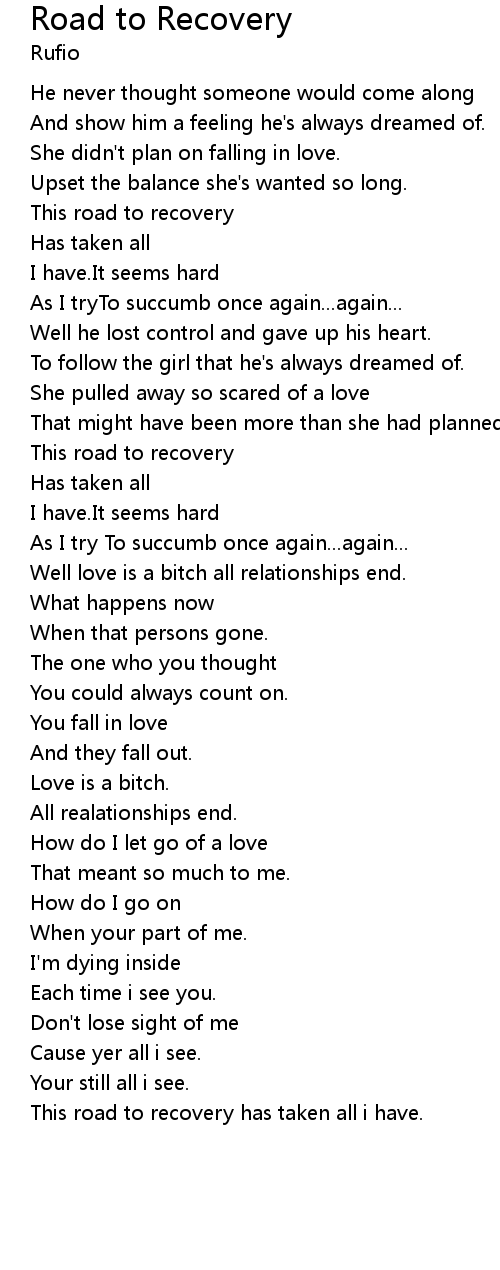 This road to recovery has taken all i have. |