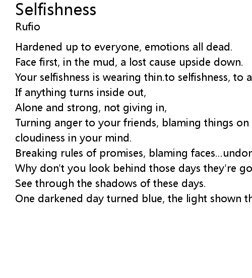 Your selfishness is wearing thin.to selfishness, to anyone. |