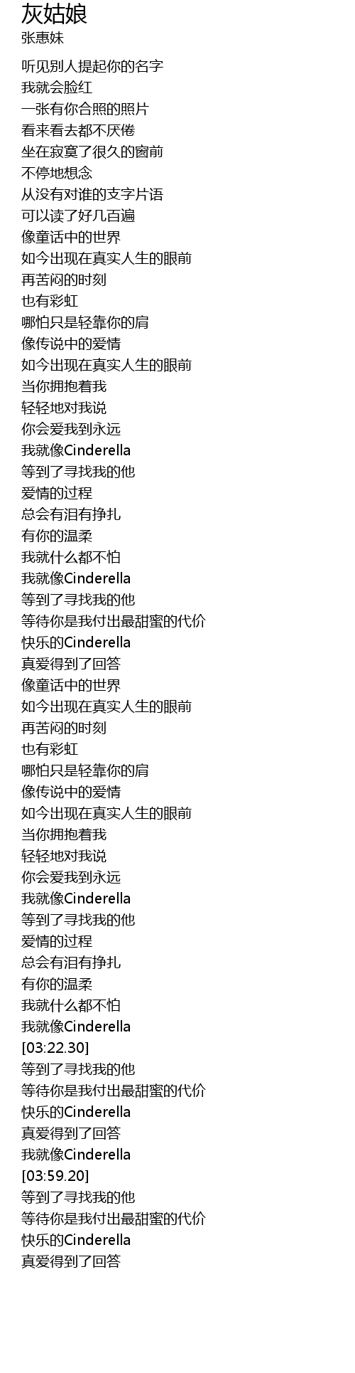 | [03:02.58] | wǒ jiù xiàng Cinderella |