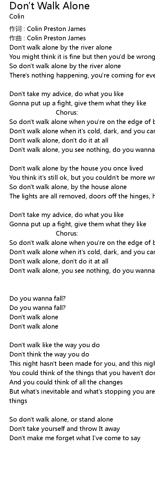 | Don' t walk alone, you see nothing, do you wanna fall? | |