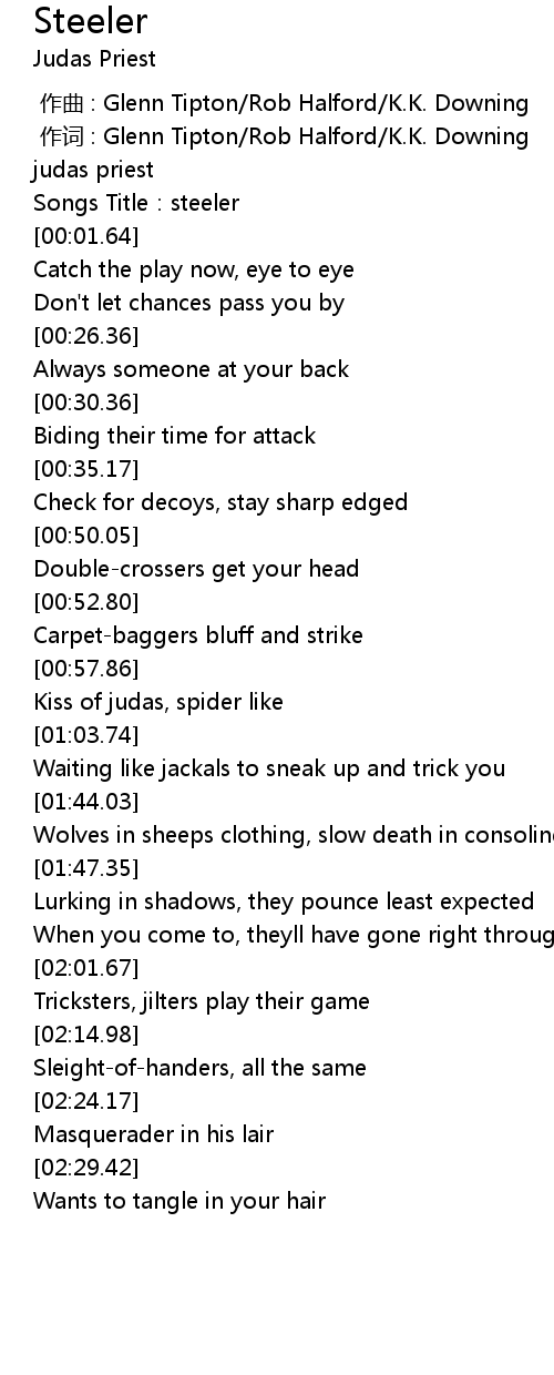 | [00:00.00] | zuò qǔ : Glenn Tipton Rob Halford K. K. Downing |