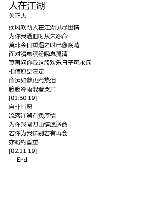 | [00:18.49] | 疾风吹劲人在江湖见尽世情 |