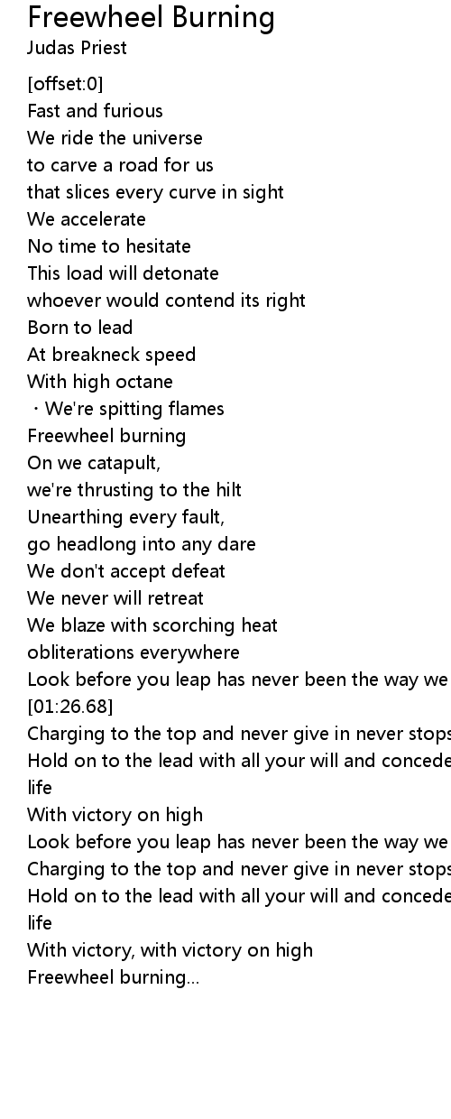 | [01:15.57] | Look before you leap has never been the way we keep our road is free |