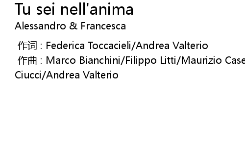 | [00:00.000] | 作词 : Federica Toccacieli/Andrea Valterio |