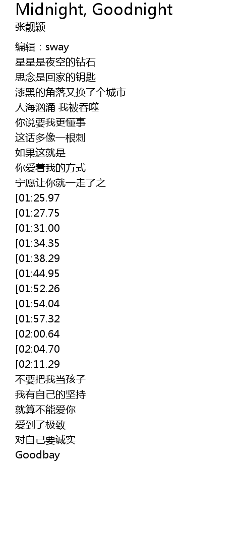 | [03:43.56][01:52.26] | Goodnight |