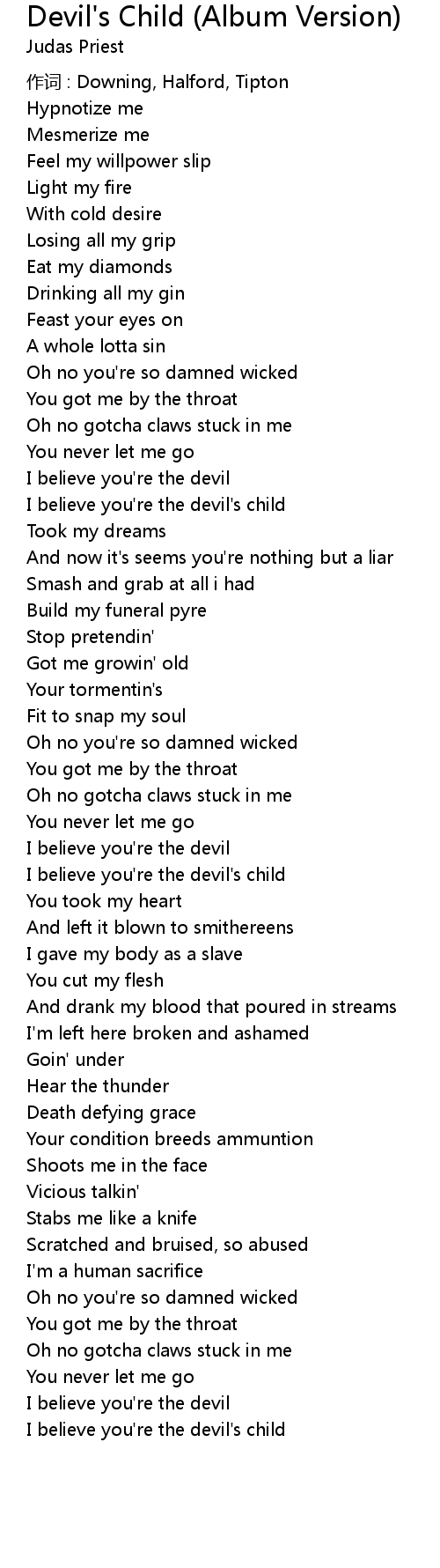 | I believe you're the devil's child | |