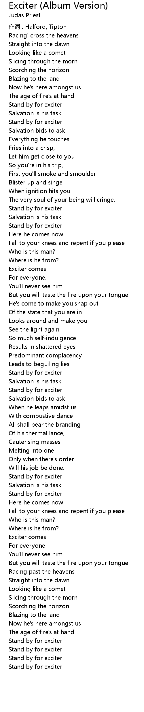 | 作词 : Halford, Tipton | |