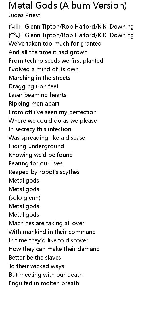 | 作词 : Glenn Tipton/Rob Halford/K.K. Downing | |