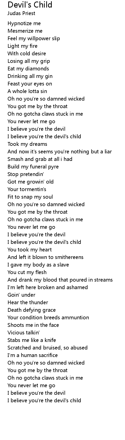 I believe you're the devil's child |