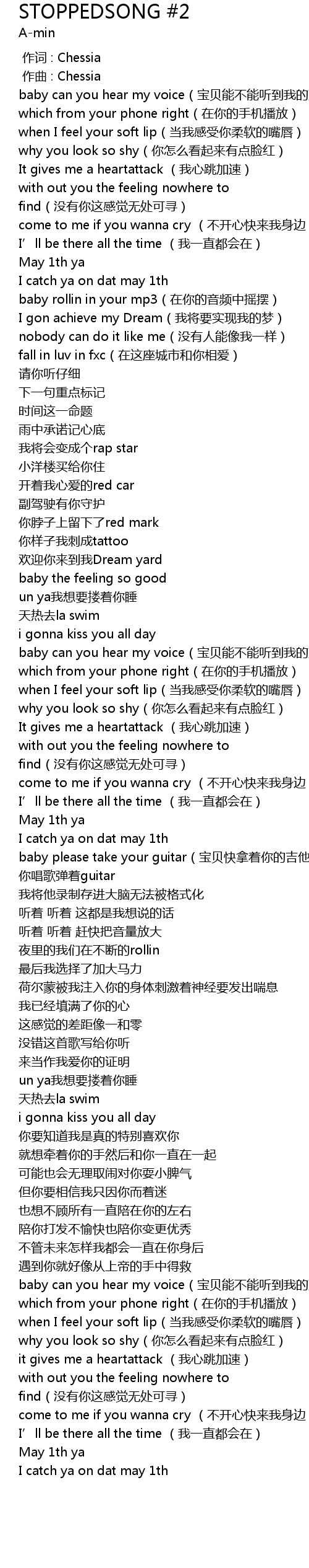 | [01:32.691] | It gives me a heartattack wǒ xīn tiào jiā sù |