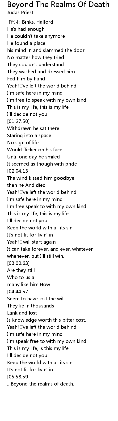 | [06:36.65] | ... Beyond the realms of death. |