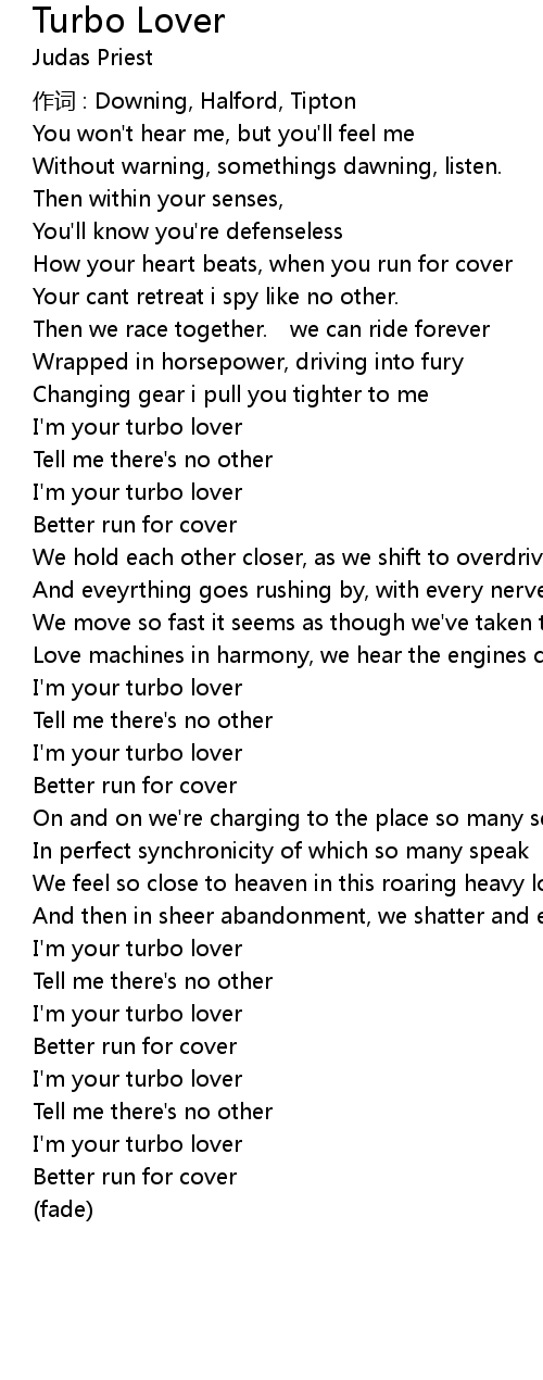 | I'm your turbo lover | |