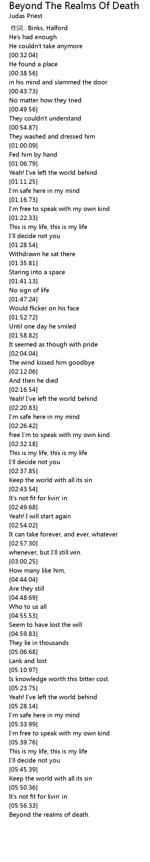 | [05:24.91] | Yeah! I' ve left the world behind |