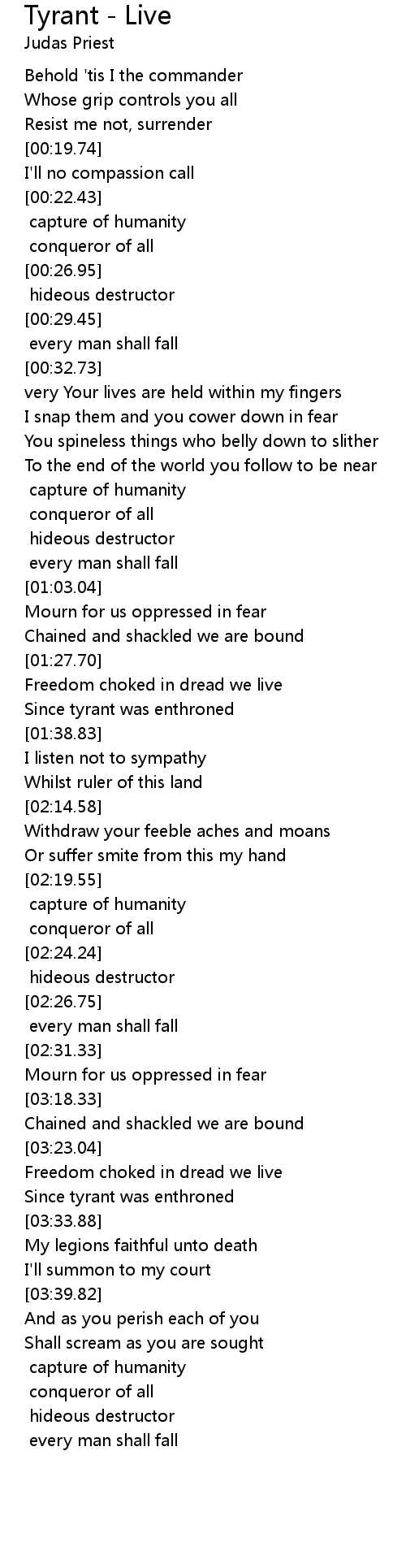 Freedom choked in dread we live |