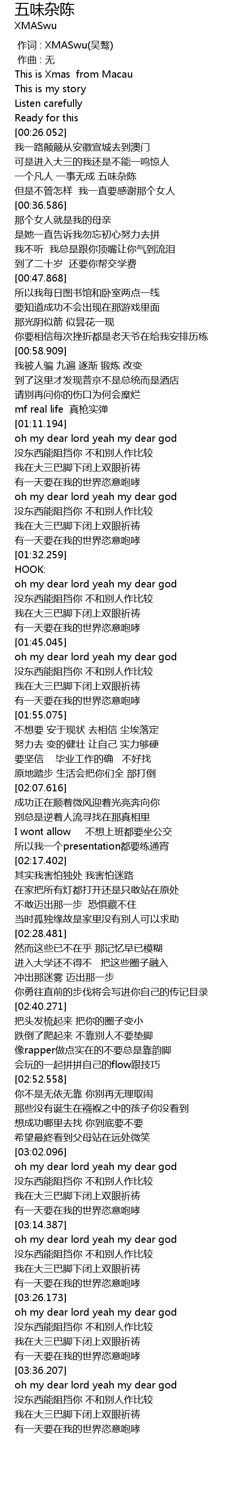 | [00:00.000] | zuo ci : XMASwu wu ao |