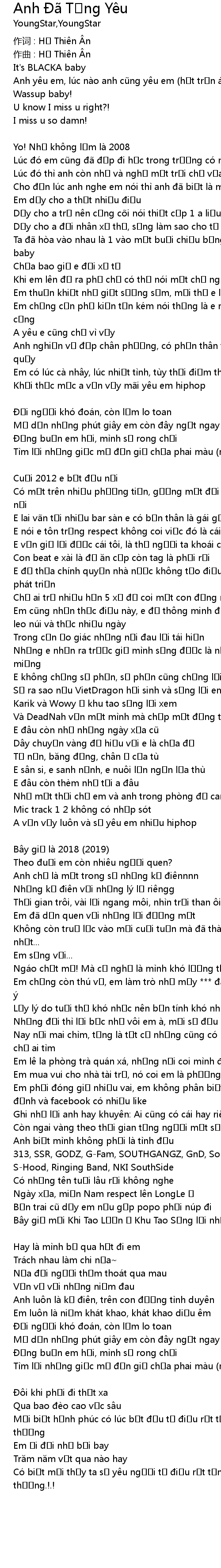 | 作词 : Hồ Thiên Ân | |