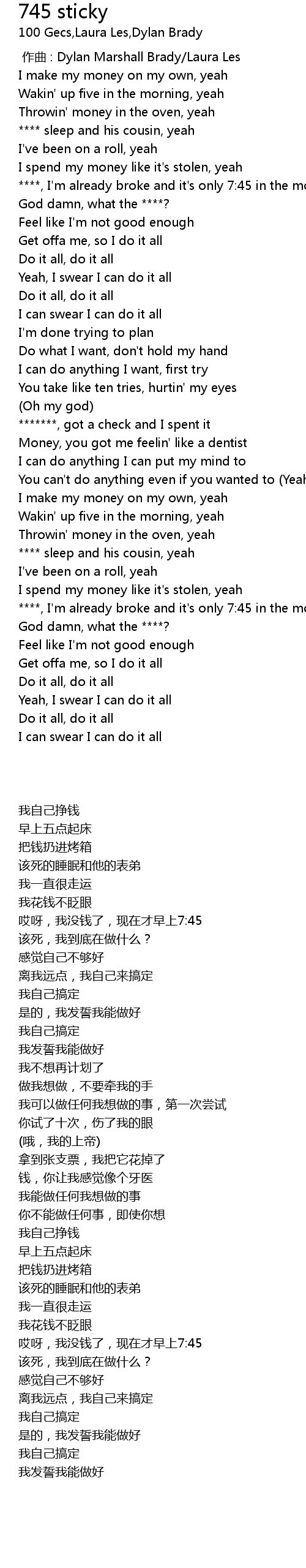 | [00:44.30] | *******, got a check and I spent it |