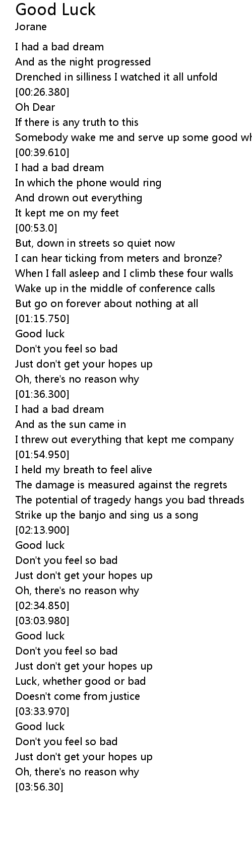 | [03:07.50] | Good luck |