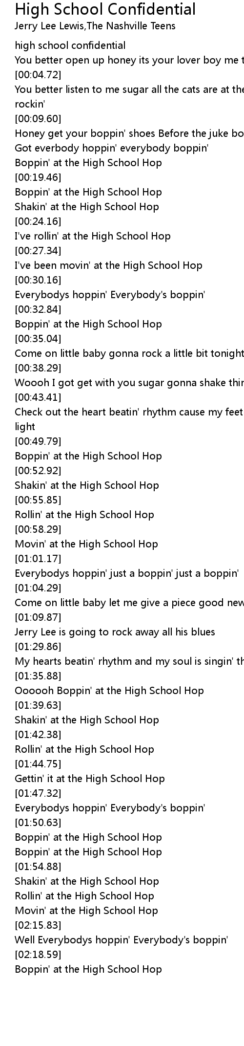 I've been movin' at the High School Hop |