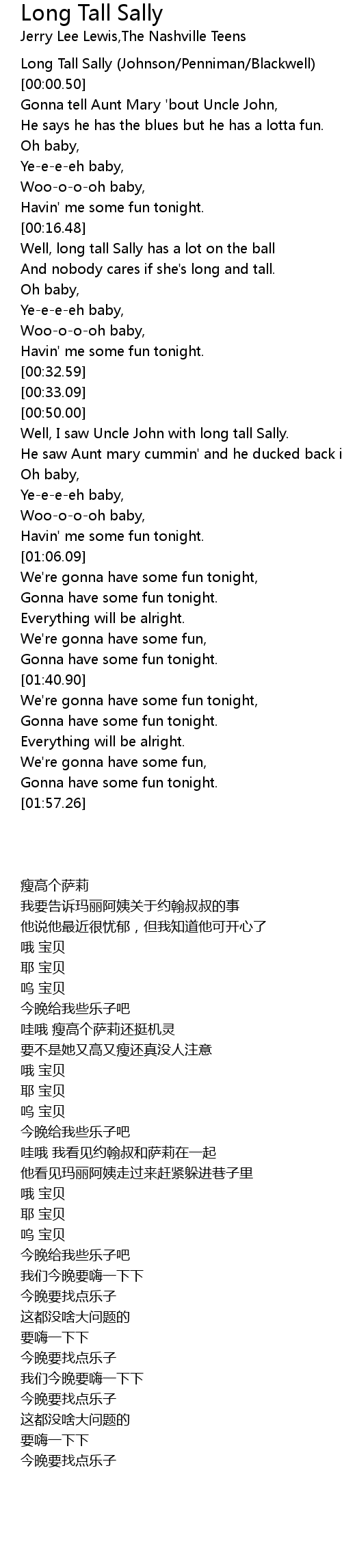 Long Tall Sally (Johnson/Penniman/Blackwell) |