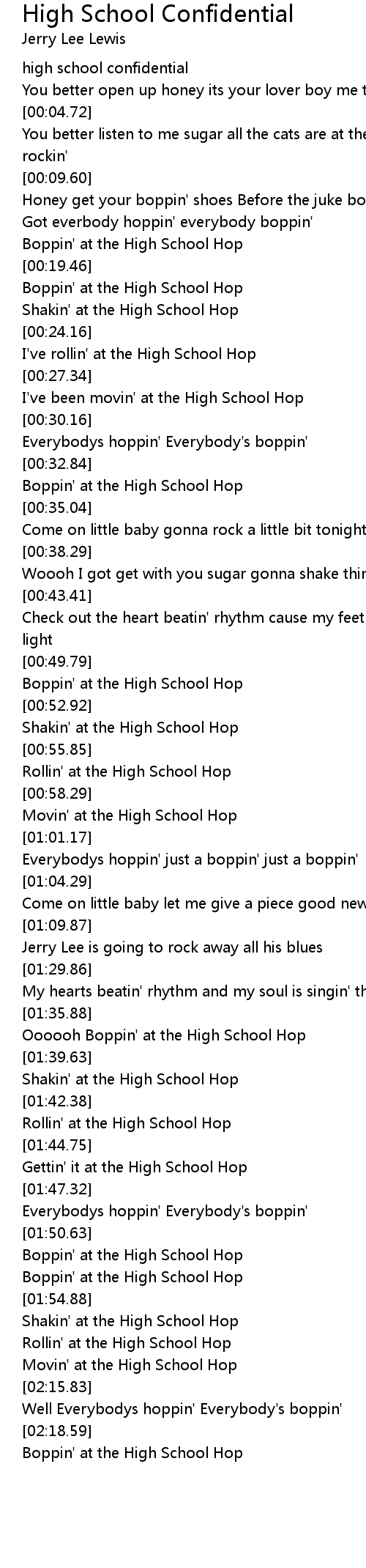 I've been movin' at the High School Hop |