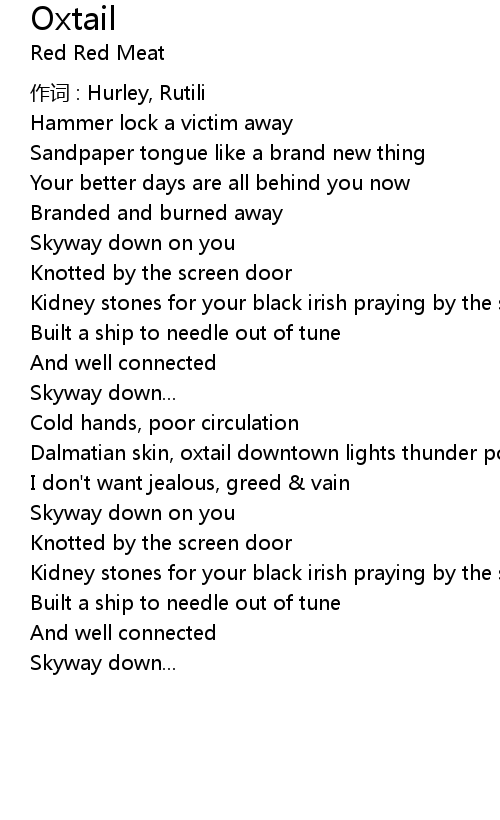 | Dalmatian skin, oxtail downtown lights thunder port-wine sex | |