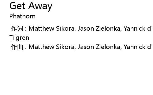 | [00:00.000] | 作词 : Matthew Sikora, Jason Zielonka, Yannick d' Assgines, Anton Tilgren |