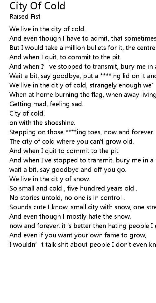 | We live in the cit y of cold, strangely enough we’re proud of it. | |