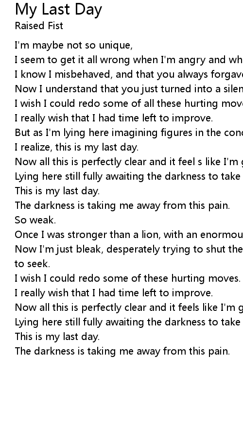 Lying here still fully awaiting the darkness to take me away from this pain. |