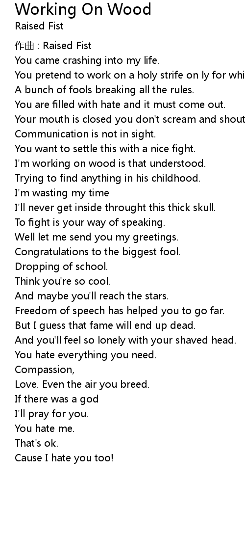 | Song | Working On Wood |