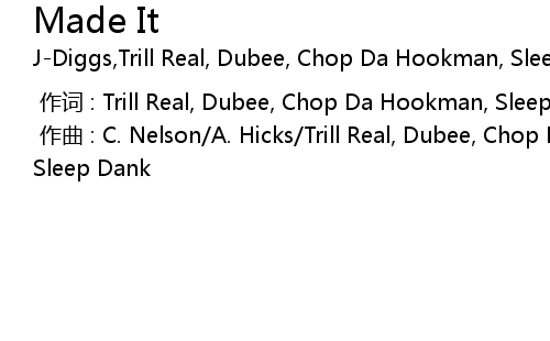 | [00:00.000] | zuo qu : C. Nelson A. Hicks Trill Real, Dubee, Chop Da Hookman, Sleep Dank |