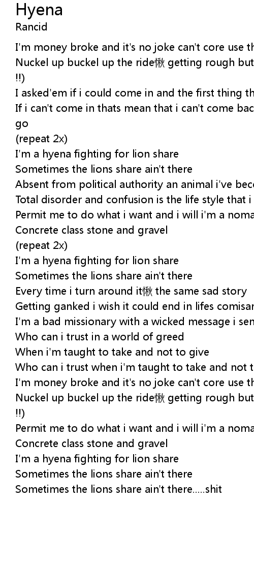 | I' m a hyena fighting for lion share | |