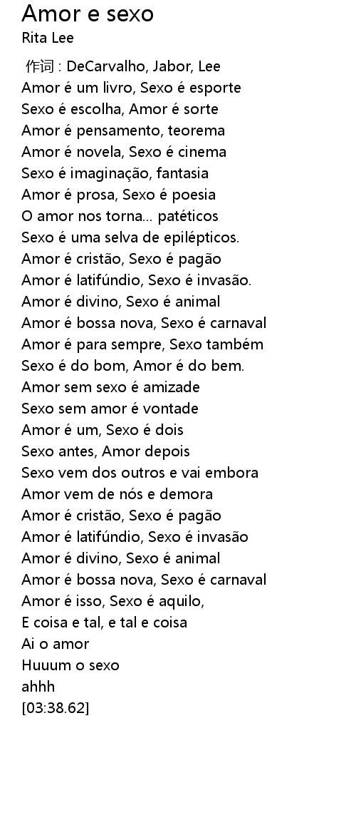 | [00:44.42] | Amor é prosa, Sexo é poesia |