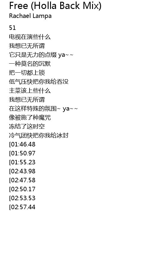 | [02:42.29][01:55.23][00:48.53] | I wanna be free |