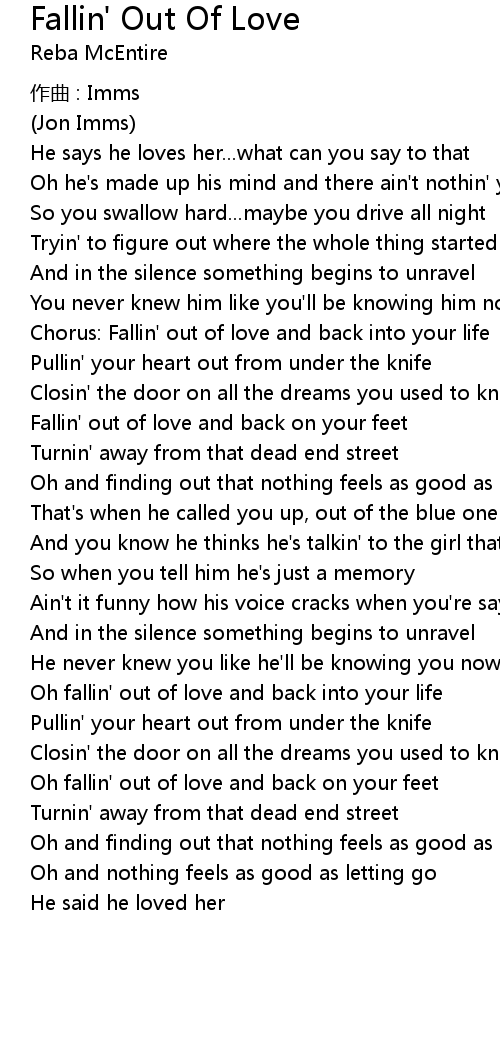 | Chorus: Fallin' out of love and back into your life | |