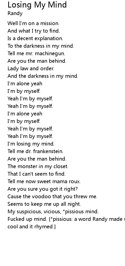 Fucked up mind. [*pissious: a word Randy made up by themselves cause it sounded cool and it rhymed.] |