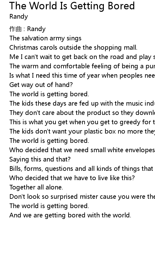 | The world is getting bored. | |