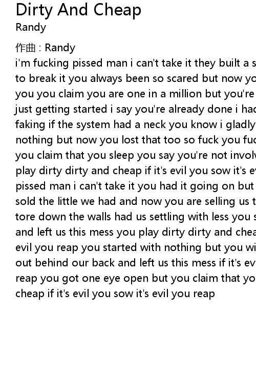 | i' m fucking pissed man i can' t take it they built a safetynet and now you want to break it you always been so scared but now you' re weak too so fuck you fuck you you claim you are one in a million but you' re a million to one you say you just getting started i say you' re already done i had enough man i' m sick of faking if the system had a neck you know i gladly break it you started with nothing but now you lost that too so fuck you fuck you you got one eye open but you claim that you sleep you say you' re not involved but you' re in knee deep you play dirty dirty and cheap if it' s evil you sow it' s evil you reap i' m fucking pissed man i can' t take it you had it going on but you choose to forsake it you sold the little we had and now you are selling us too so fuck you fuck you you tore down the walls had us settling with less you sold us out behind our backs and left us this mess you play dirty dirty and cheap if it' s evil you sow it' s evil you reap you started with nothing but you will end up with less you sold us out behind our back and left us this mess if it' s evil you sow it' s evil you reap you got one eye open but you claim that you sleep you play dirty dirty and cheap if it' s evil you sow it' s evil you reap |