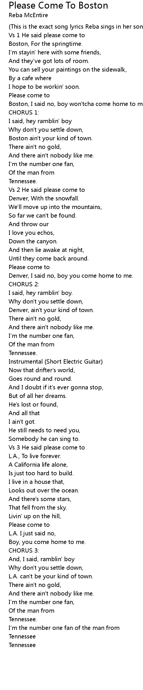 (This is the exact song lyrics Reba sings in her song) |
