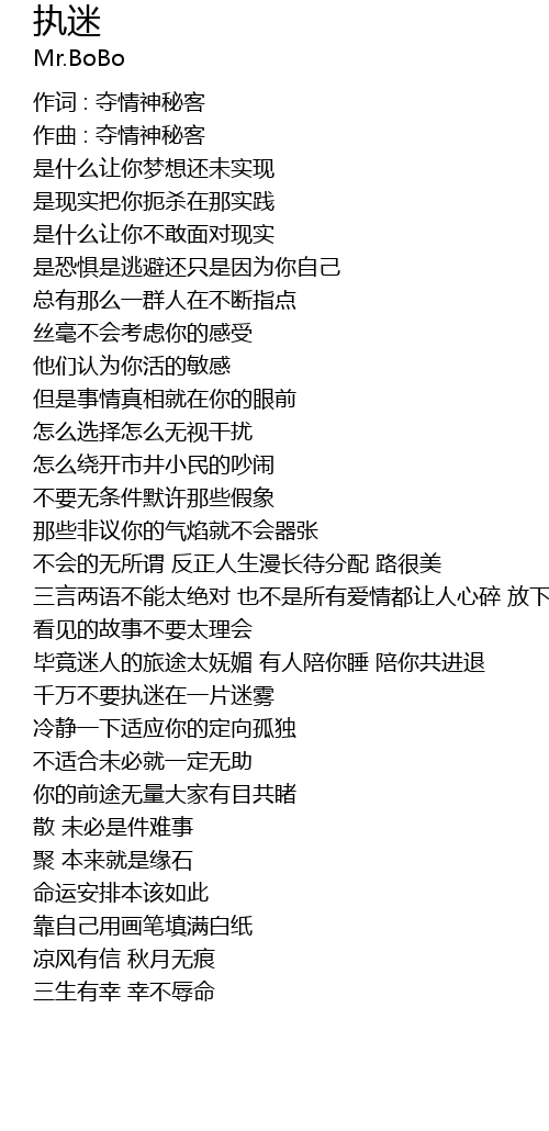 | 作词 : 夺情神秘客 | |