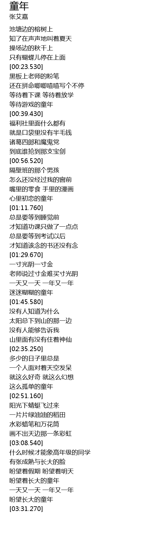 | [03:28.160] | 盼望长大的童年 |