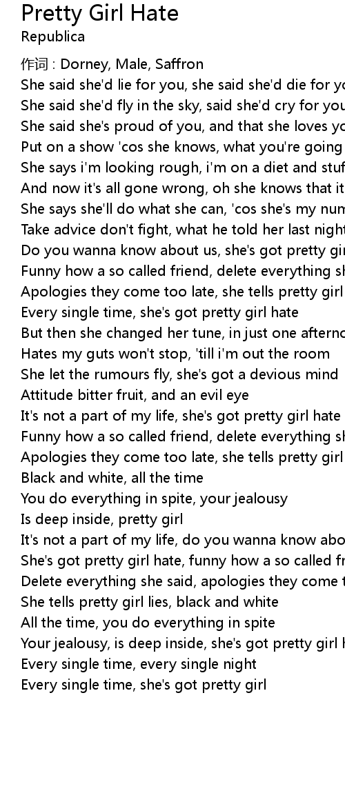 | Do you wanna know about us, she' s got pretty girl hate | |