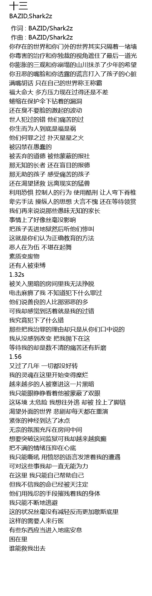 | [00:00.000] | 作词 : BAZID/Shark2z |