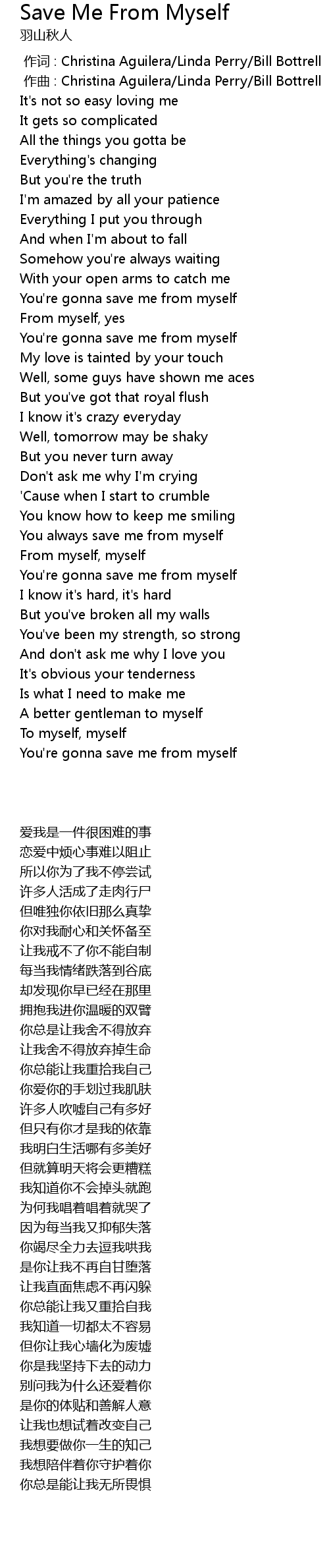 | [00:41.122] | You' re gonna save me from myself |