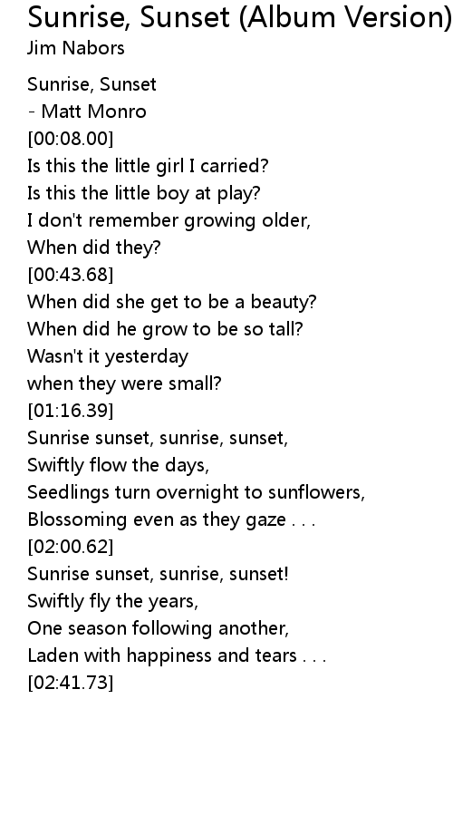 Sunrise sunset, sunrise, sunset, |