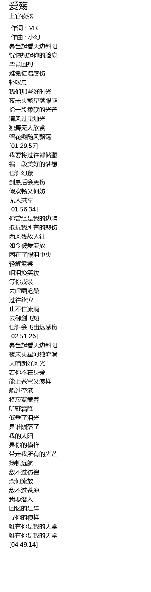| [00:34.01] | mù sè qǐ kàn tiān biān xié yáng |