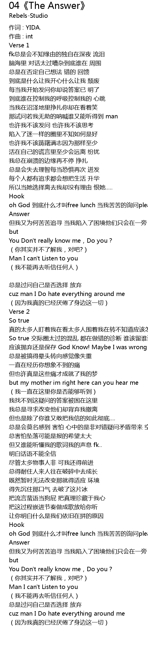 | oh God dào dǐ shén me cái jiào free lunch dāng wǒ kǔ kǔ de xún wèn please give me The Answer | |