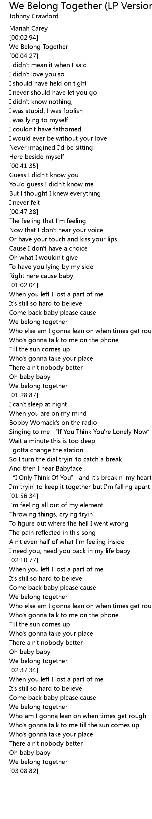 | [01:35.19] | Singing to me “If You Think You're Lonely Now” |