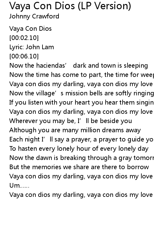 | [01:54.45] | Vaya con dios my darling, vaya con dios my love |