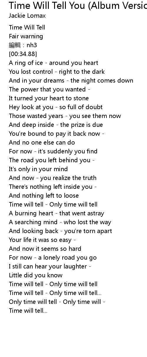 | [00:03.83] | Time Will Tell |